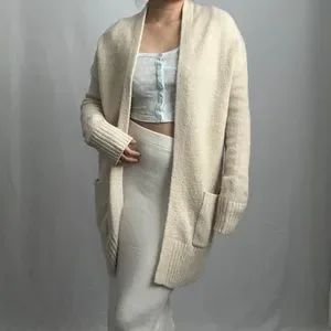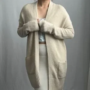 This beautiful cardigan has two pockets on the front. Keeps you warm both summer and winter. Minimal pilling.
