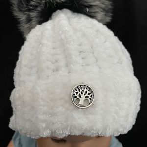 Faux Fur pompom is removable via a snap for easy wash