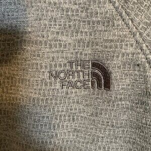 This versatile North Face jacket features a full-zip front, heather grey body with black contrast detailing, and a comfortable fit in size large. Perfect for layering, it offers warmth without bulk and a timeless outdoor style. Great for everyday wear, travel, or outdoor adventures