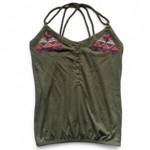 •vintage late 00s GARAGE army green indie sleaze boho safari cross back bubble hem em piece red tank 🫒