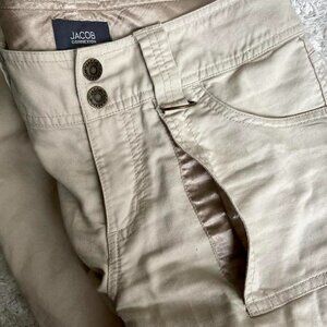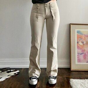 00s low-rise flared khakis from Jacob Connexion! Featuring snap buttons, d-rings and satin under the pockets (4th pic for details). Like new!