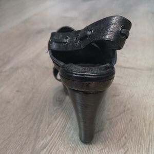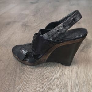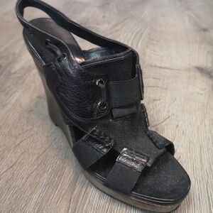 00s vintage Derek Lam black leather gladiator slingback platform wedge sandals ***HOST PICK**