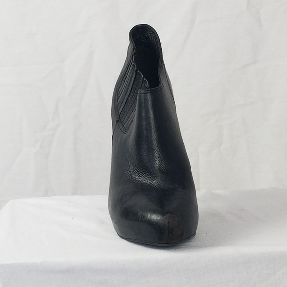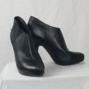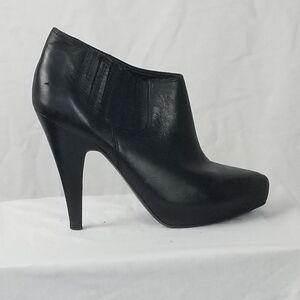 90s Vintage pre-owned minimalist classic black leather slip-on heeled booties