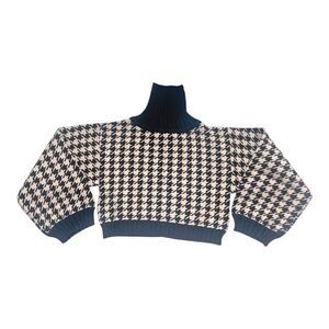 Knitted Cropped Turtle Neck Sweater with Puffed Sleeves