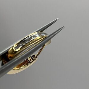 Beautiful natural diamond hoop earrings, 14k gold overlay.