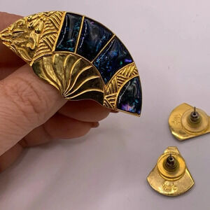 🖤#058 1980s vintage gold tone abalone brooch and earring set signed Duri