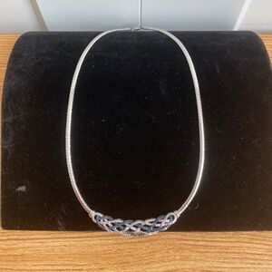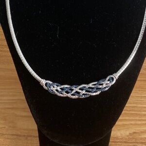 0.5ct TDW Blue Topaz & White Diamond Weave Omega Necklace Silver Plated