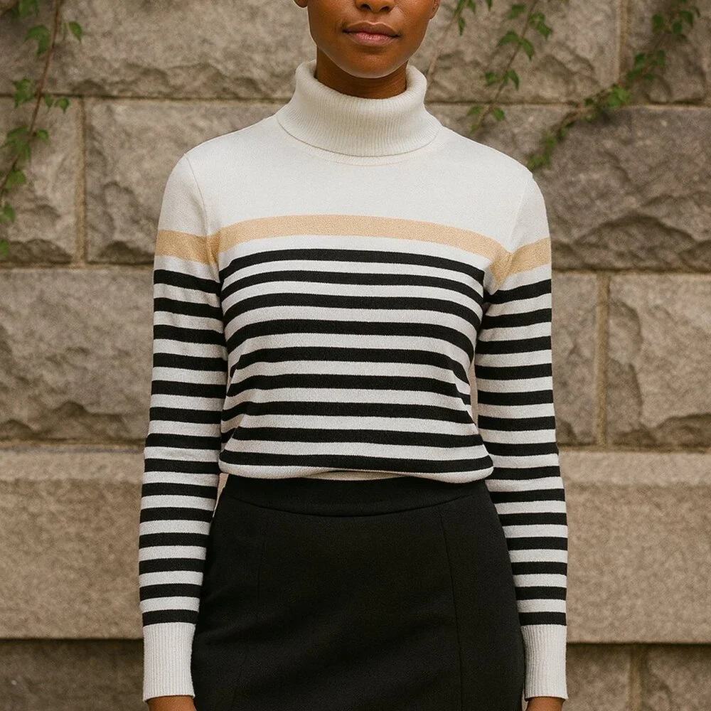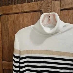 TOMMY HILFIGER | White Black & Gold Striped Turtleneck Sweater - Medium