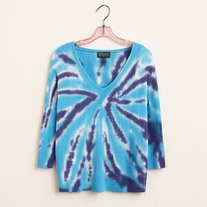 POLO JEANS Blue Tie Dye Cable Knit Sweater - Large