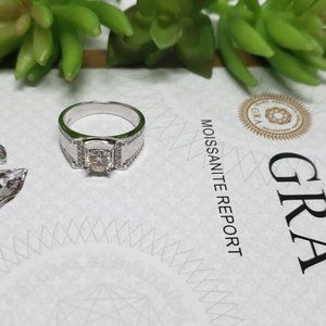 1 Carat Moissanite Men Engagement Ring 925 Sterling Silver Wedding Band D-FL