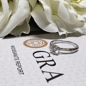 1 Carat Moissanite Solitaire Ring with 925 Sterling Silver Band