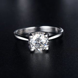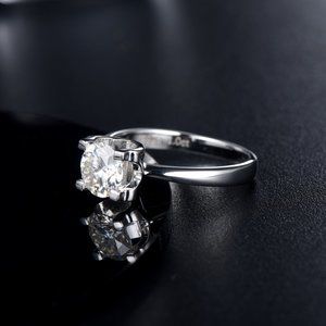 1 Carat Moissanite Solitaire Ring with 925 Sterling Silver Band