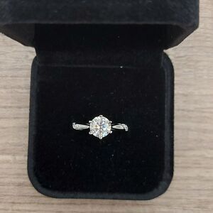 1 Carat Platinum Plated Moissanite 925 Silver Engagement Ring