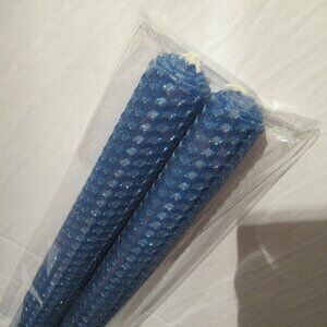 1 Pair, 8" Bees Wax Candles, Blue w/ Blue Glitter, Handmade, Organic