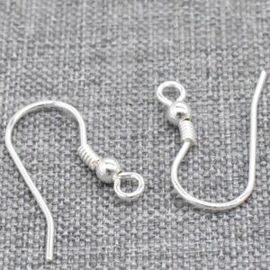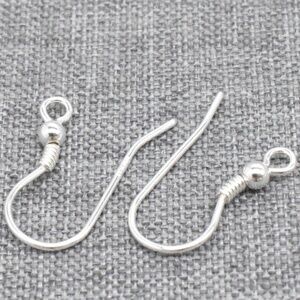 1 Pair Sterling Silver Coiled Earring Wires with Beads 925 Silver Ear Hooks