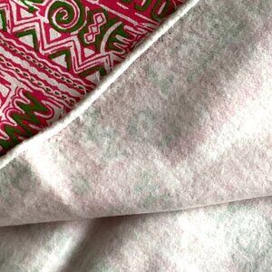 1 Piece of Thin Fleece Lined Fabric Material Pink Green Aztek Print Sewing