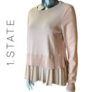 1 State Long Sleeve Peach Colored Sweater with Pleated False Shirt Medium
