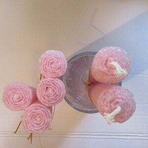 1 pair, Bees Wax candles, Pink, Honeycomb pattern, Hand Rolled, 8"