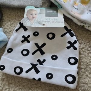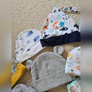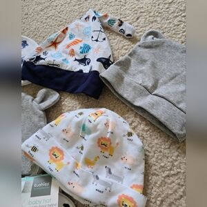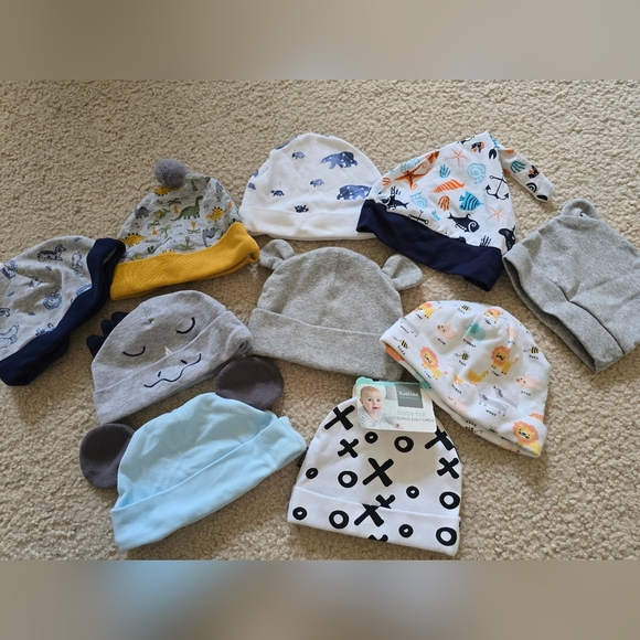 Keep your little one cozy with this adorable set of gray and blue beanies. Perfect for any outing.