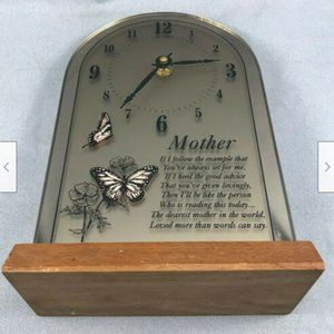 10" Butterflies Glass Gold Standing Mantel Clock Poem Mother Gift for Mom Wife