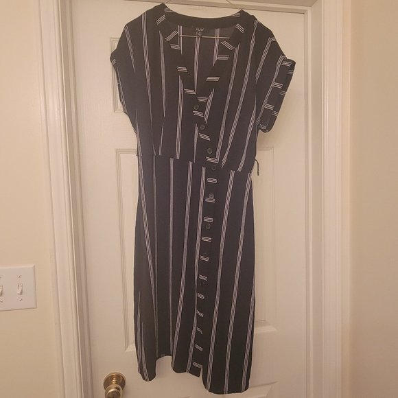 - black knee length dress - button detailing - bat wing sleeves