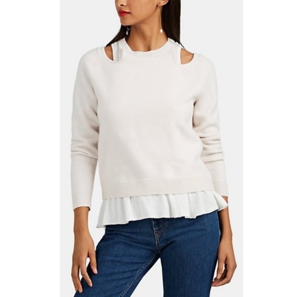 10 Crosby Derek Lam Layered Cold Shoulder Sweater Cream White Size XS Wool