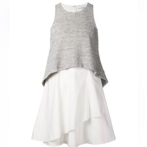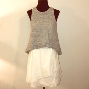 10 Crosby Derek Lam Layered Sleeveless Cotton Dress White Grey Knit 0