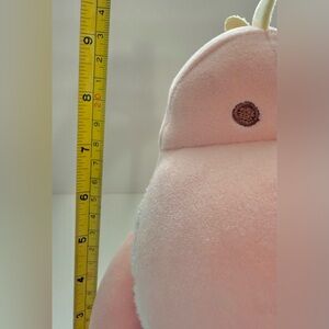 Soft and cuddly peach/punk dinosaur plush toy with yellow accents. Perfect for kids who love dinosaurs.