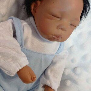 This sleepy little 10 inch baby is DeShawn from the Ashton Drake Galleries Tiny Miracles Collection.