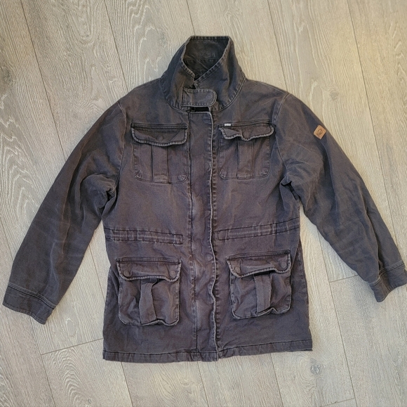 10 Tree Jacket well worn but still in good condition. Size Large, mostly Cotton outer and polyester inner, not insulated so more of a spring/fall jacket unless layered with flannel or fleece.