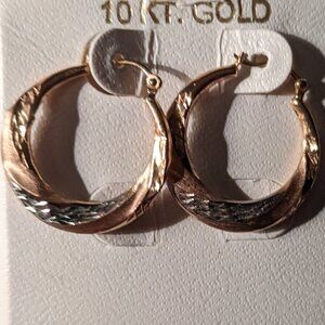 Tri-Color diamond cut hoop sleeper hoop earrings - lightweight 10K