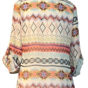 $ 10 $ add on RACHEL KATE/CHICOS sunset colours boho layered chiffon mini dress.