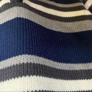 Zip collar navy grey white striped.