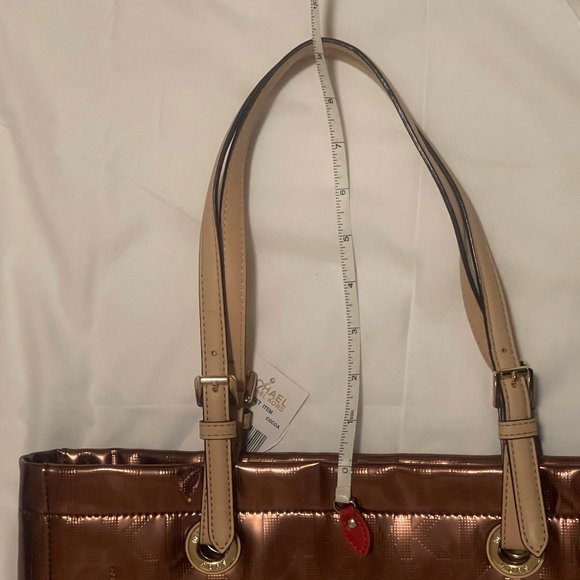 100% AUTHENTIC Michael Kors Signature Mirror Metallic PVC N/S Tote in Rose Gold
