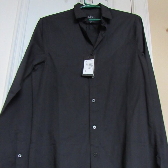 $100 Armani Exchange Men Shirt, Cotton, Black, Small, Button Down, long Sleeves, armpit to armpit 19in, length 31 in, Slim