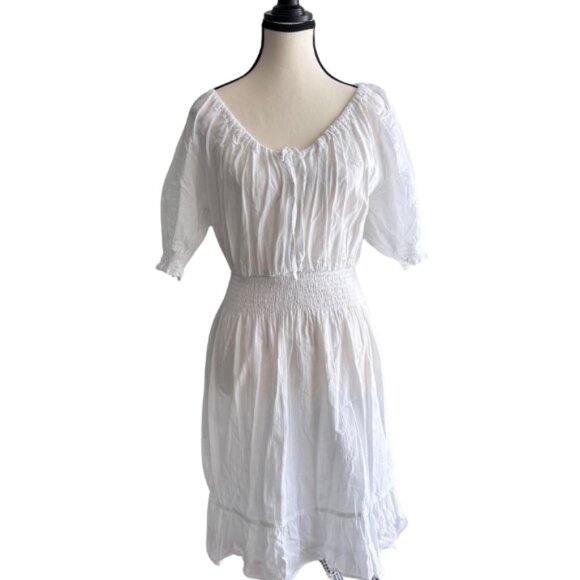 100% COTTON TEXTURED OFF THE SHOULDER WHITE DRESS, SZ. L TALL