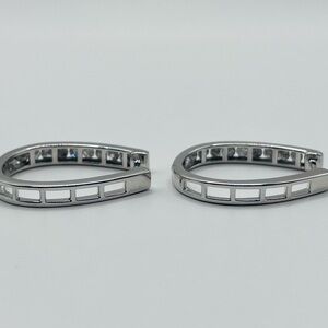 1.00 CT Channel Natural Diamond Sterling Silver Large Hoops
