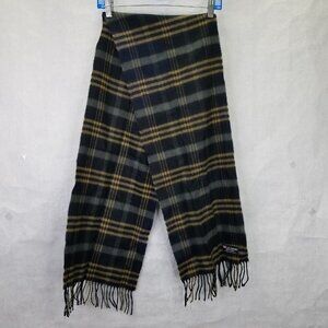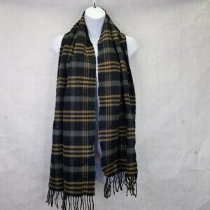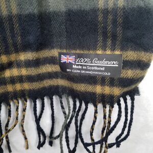 100% Cashmere Scotland Winter Scarf Black Brown Grey Plaid Fringe Soft Fuzzy
