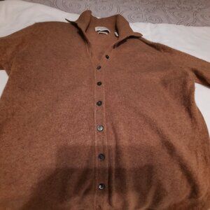 Valerie Stevens shirt style cardigan, mother of pearl buttons, buttoned cuffs. 100% Cashmere, quality piece. Medium.