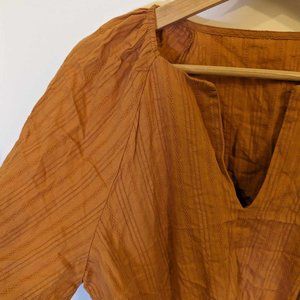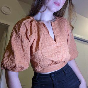 100% Cotton Boho Cropped Tie-Waist Puff-Sleeve Blouse Rust Colour Cottagecore