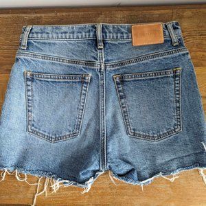 Like New, 98% cotton 2% elastane, lightblue denim, everlane cheeky short, high quality buttons / inseam / lining.