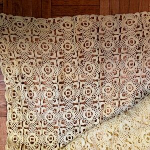 100% Cotton - Hand-made Crocheted Yellow Blanket Tablecloth (66" x 84" approx)