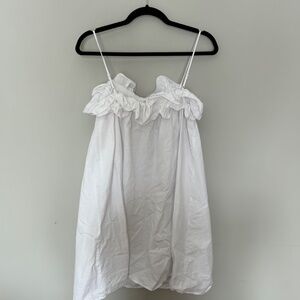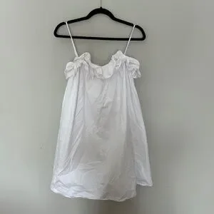 100% cotton white mini dress from brand HM. Adjustable straps and ruffle detail across the chest. Size XS but could also fit a SM or MED. Super cute and easy to throw on!