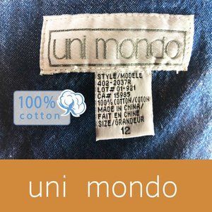 UNI MONDO Size 12 19" armpit to armpit 50" shoulder to hem.
