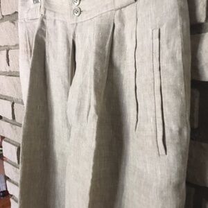100% Crisp Linen natural colour pants - NWOT. Tapered, high waisted, fully lined. Slight make-up spot at waist. From mid-2000's, made in Ukraine. Very beautiful, high quality.