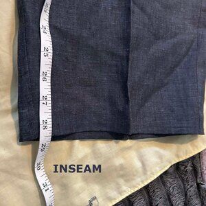 100% FINE LINEN PANTS, CHARCOAL BLUE, SIZE 24, HIDDEN FRONT FLY, TWO POCKETS