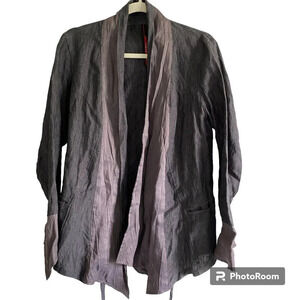 100% Flax LINEN Ana Nonza Bell Sleeve Cardigan with Belt Gray Purple Size M