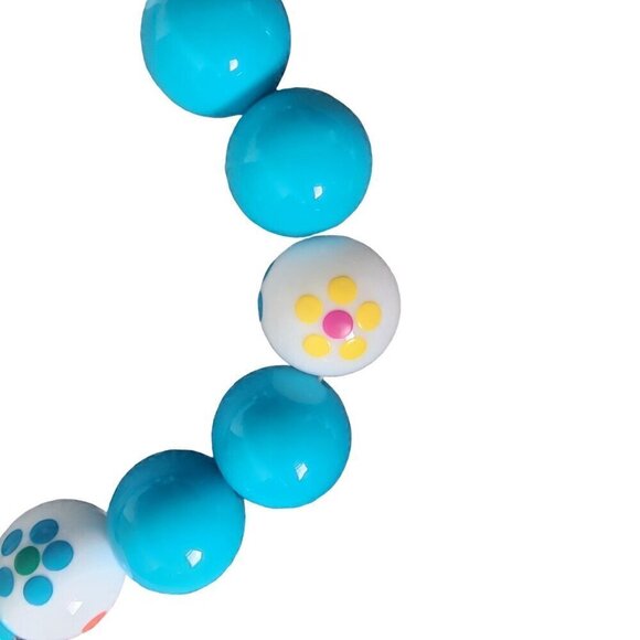 Gorgeous chunky bobble statement necklace in genuine lucite. Beautiful turquoise blue with contrasting white (with floral paint in multi toned colors).