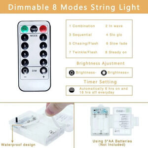 100 LED Fairy String Lights Battery Powered with Remote & Timer 8 Lighting Mode