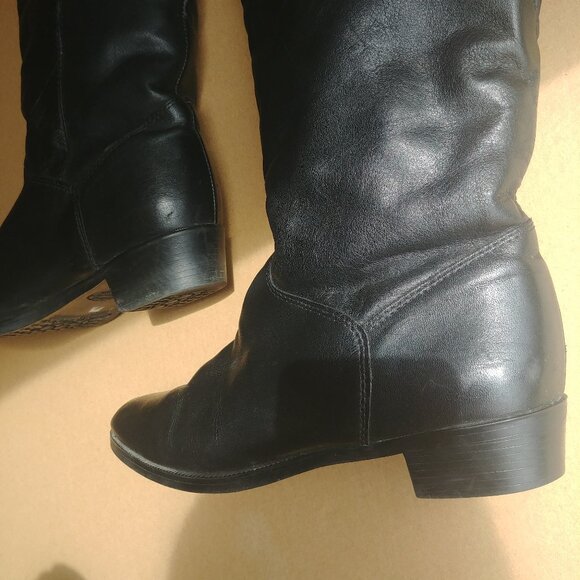 100% Leather Vintage Made in Canada Black Leather Winter Boots Fleece Lined